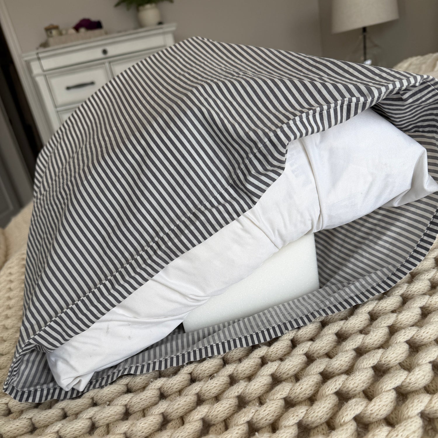 Put the wedge inside your pillowcase and underneath your pillow. This will elevate the head and help keep your airway open